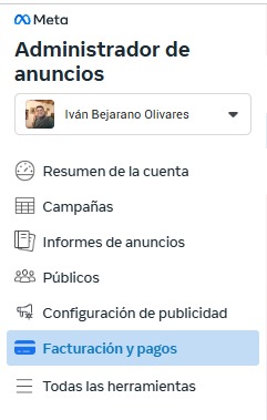 📋 Acceder a través de tu administrador de anuncios en Faceboox, y acceder a PAGOS.